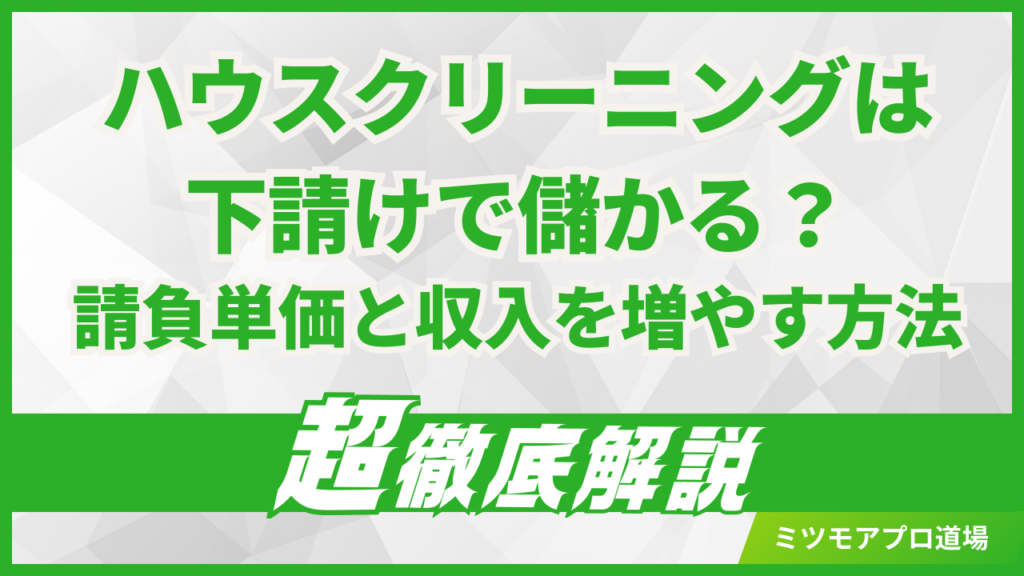 「営業に自信がないからまずは下請けから始めたい」 「でも、下請けは単価が安くて生活できないと聞いて不安…」このようにお悩みではありませんか? ハウスクリーニング... -