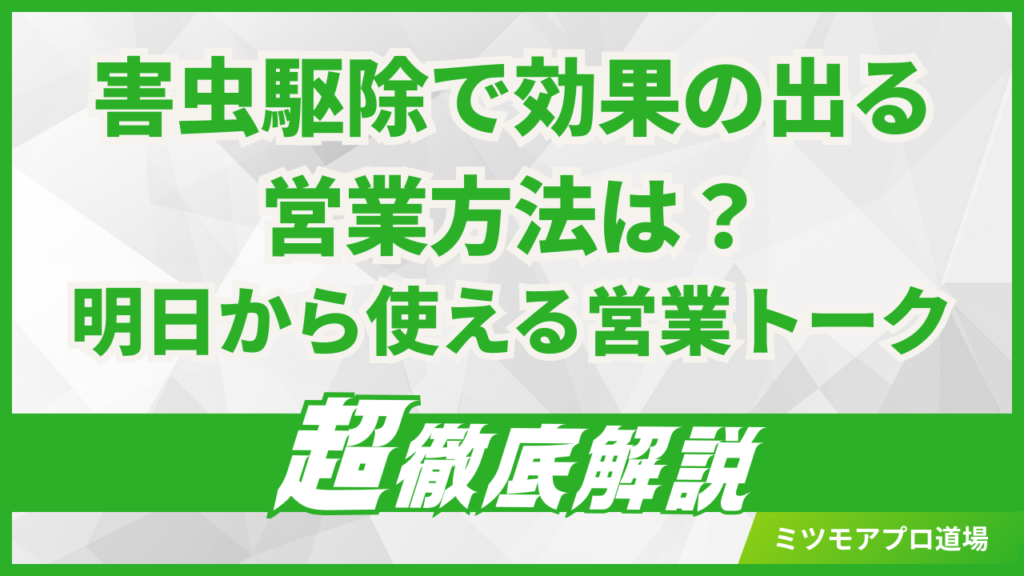害虫駆除の新規開拓で効果の出る営業方法は?テレアポ・飛び込み営業用のトークも紹介 害虫駆除の営業で成果を出すには、営業先ごとの特徴を理解した上でアプローチ方法... -
