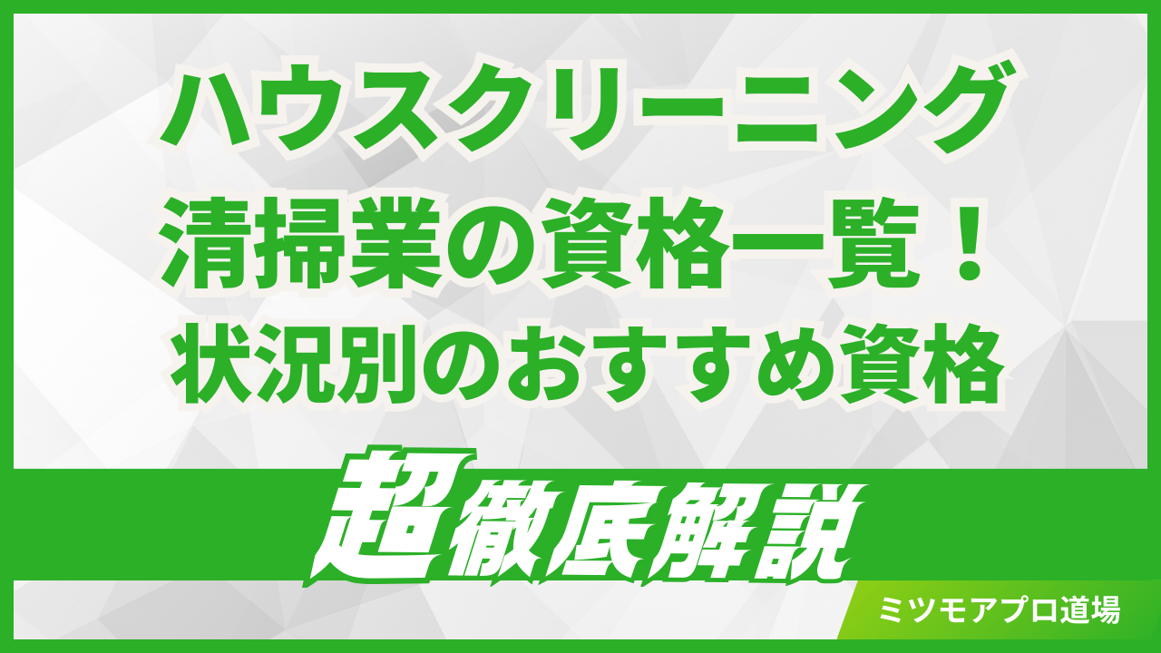 ハウスクリーニング技能士は、住宅の清掃に関する唯一の国家資格であり、個人のお客さんに「プロの技術」を証明する最高の看板になります。