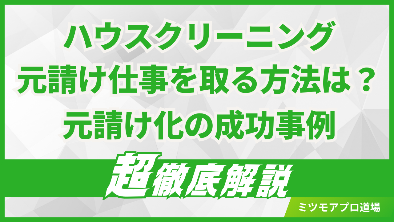 この記事では、初期費用をかけずに始められる集客方法、下請けを続けながらリスクを抑えて元請けを増やす考え方、そしてハウスクリーニングに強いマッチングサイト「ミツモア」での具体的な成功事例を解説します。